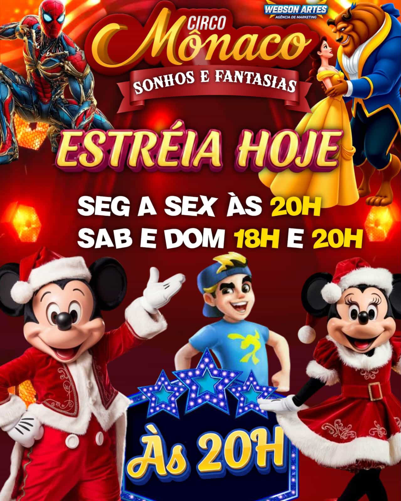 A cidade de Saloá recebe, a partir desta sexta-feira (05/12), a estreia oficial dos espetáculos “Sonhos e Fantasias”, do tradicional Circo Mônaco. A primeira apresentação acontece às 20h, no campo localizado por trás da Igreja Católica, marcando o início de uma temporada que promete encantar crianças e adultos.