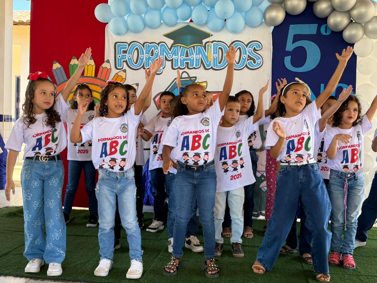A Escola Municipal do Sítio Santa Tereza viveu, na manhã da última sexta-feira (12), um momento marcado por emoção, alegria e muita beleza com a realização da festa de formatura das crianças do ABC e dos alunos do 5º ano. O evento reuniu alunos, familiares, professores e colaboradores da unidade escolar, celebrando uma importante etapa na vida educacional das crianças.
