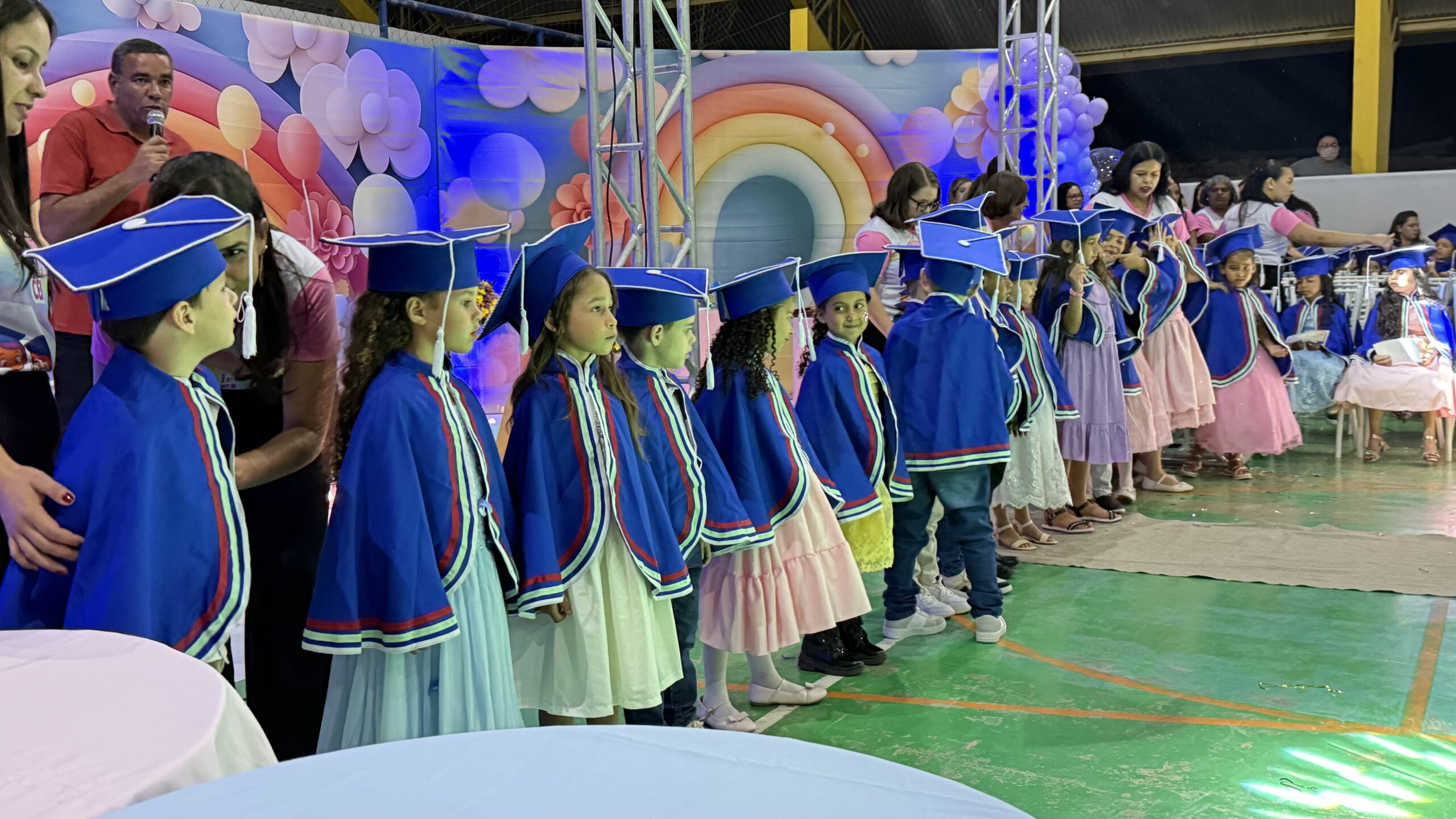 A solenidade reuniu familiares, educadores e autoridades locais, entre elas o prefeito Júnior de Rivaldo, que prestigiou a celebração ao lado de representantes da Secretaria Municipal de Educação e demais convidados. A programação contou com apresentações lúdicas, decoração temática e a entrega de certificados, em um momento de emoção para pais e responsáveis.