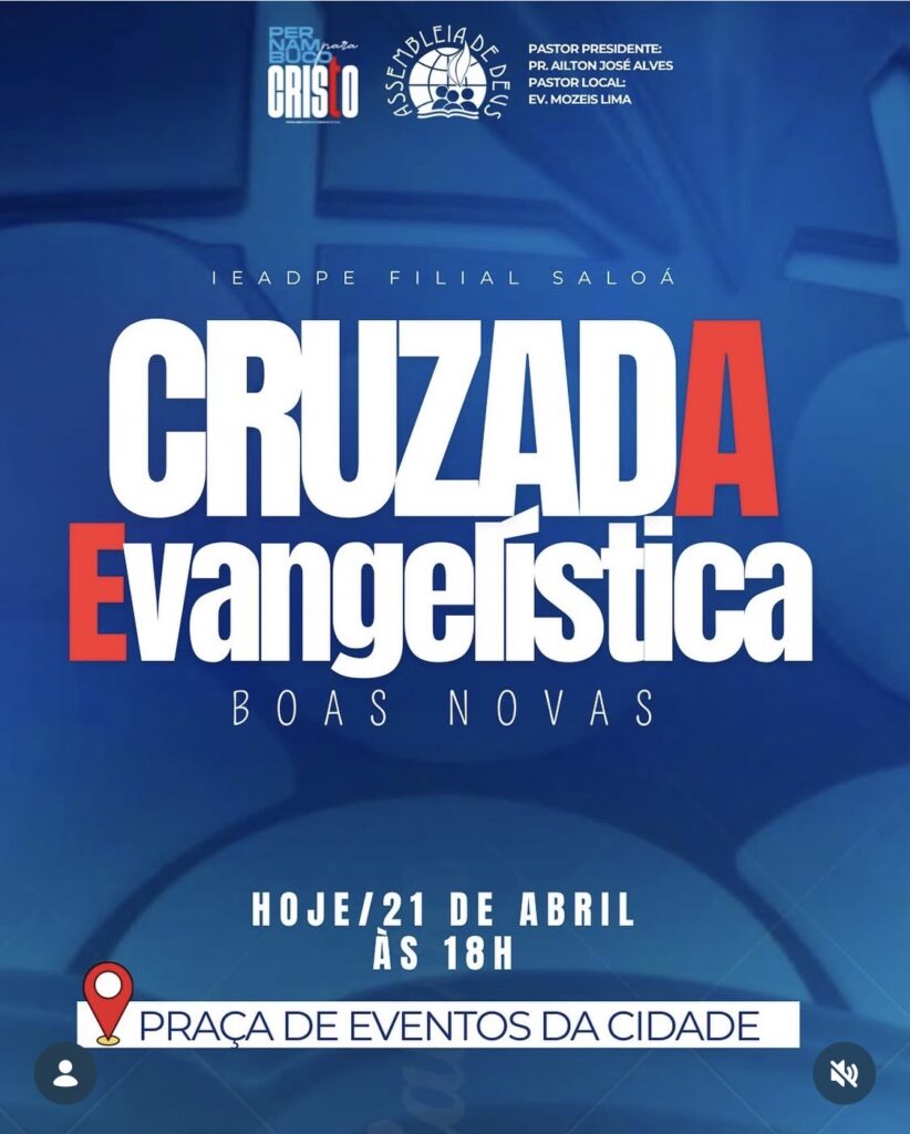 A Cruzada “Pernambuco para Cristo” integra uma série de ações evangelísticas realizadas em diferentes municípios do estado, ampliando o alcance da mensagem cristã e promovendo momentos de espiritualidade e união entre os participantes. O evento tem o total apoio da Prefeitura Municipal de Saloá.