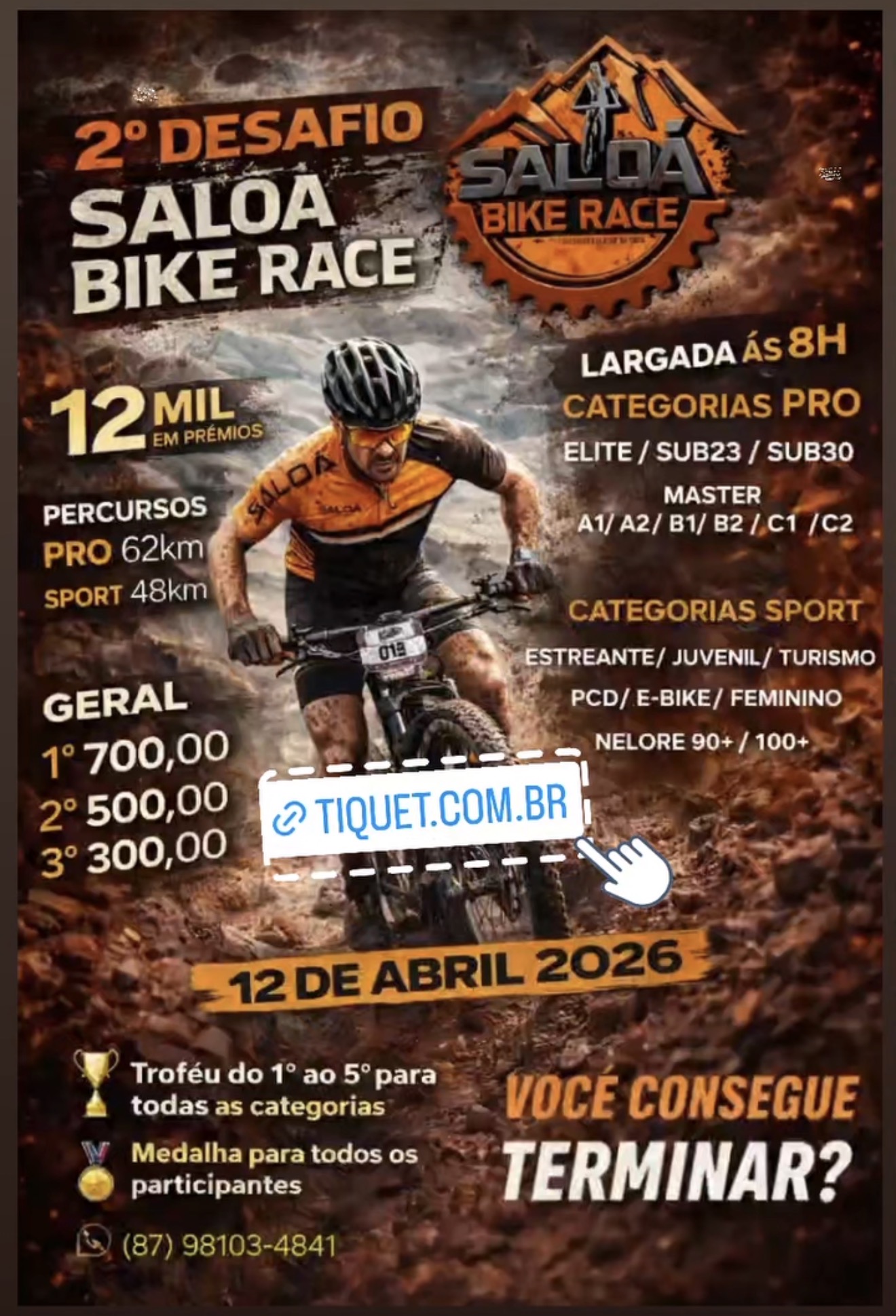 O município de Saloá se prepara para receber mais uma grande competição esportiva que promete movimentar atletas e amantes do ciclismo em toda a região. No dia 12 de abril de 2026, acontecerá o 2º Desafio Saloá Bike Race, evento que reunirá ciclistas de diferentes categorias em percursos desafiadores e premiação atrativa.